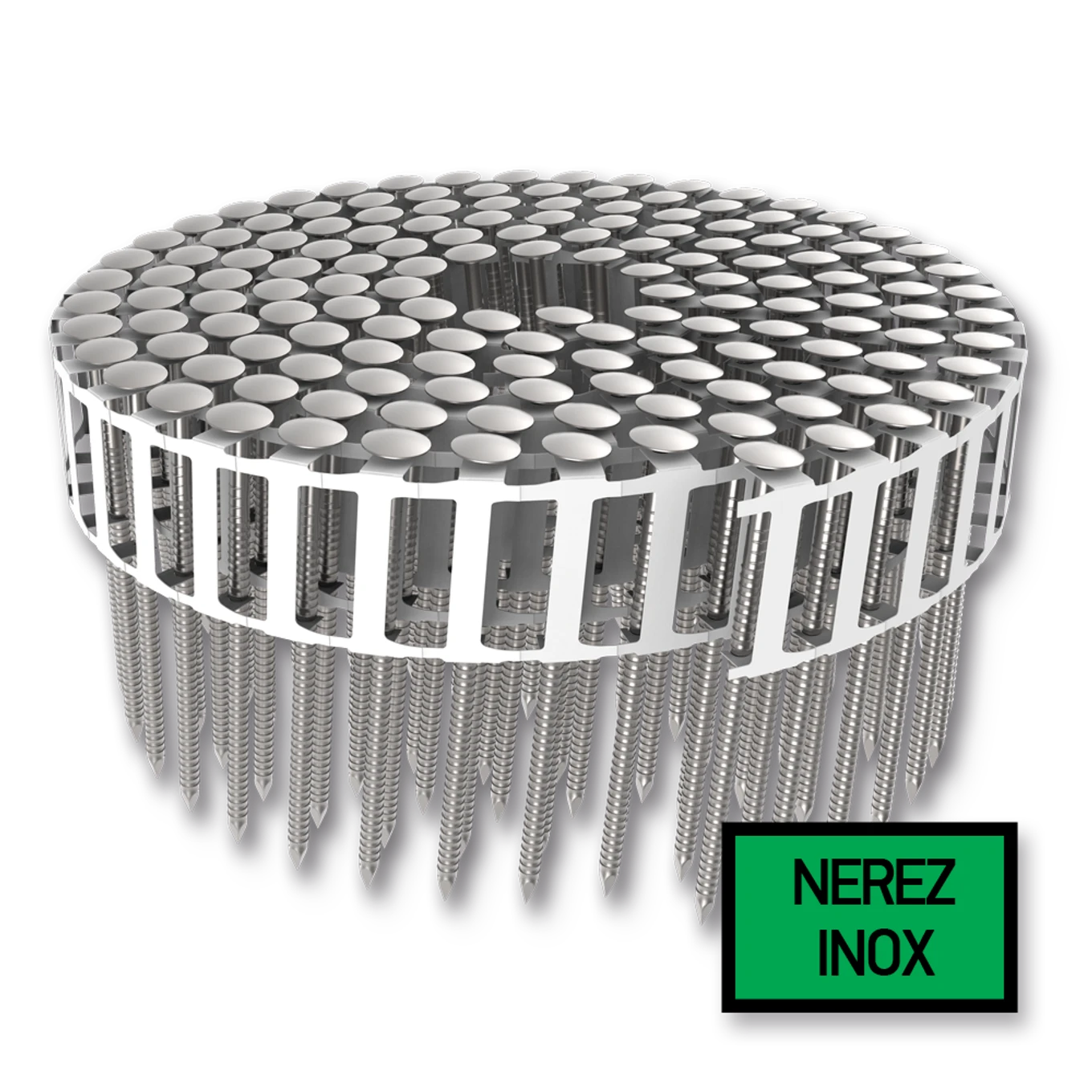 15° Hřebíky v plastovém svitku 2,5 x 45 mm konvexní čočková hlava nerez A2