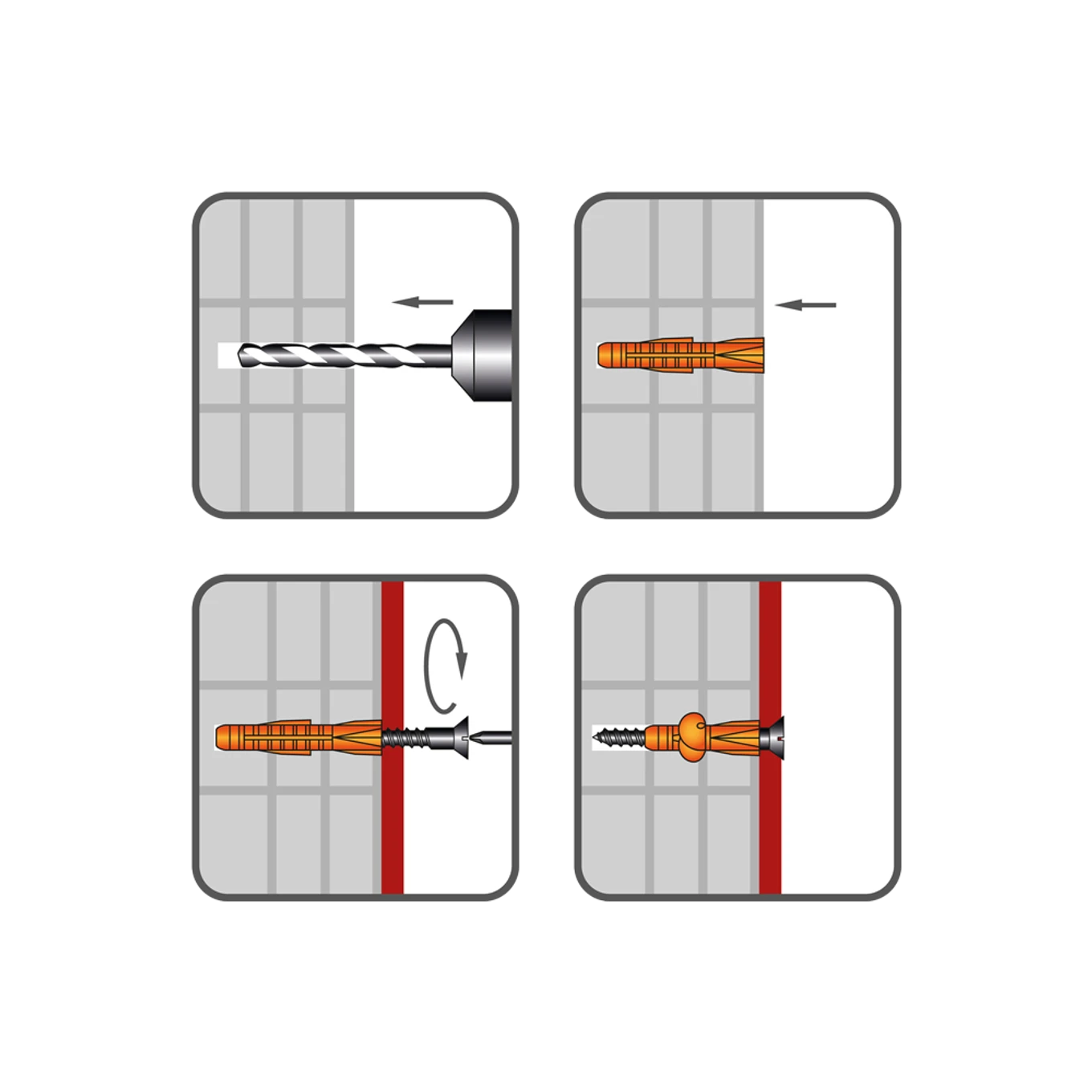 Uzlovací hmoždinka je vhodná pro použití do všech typů stavebních materiálů. V dutinách materiálu vytvoří po dotažení uzel. Délka vrutu musí vždy přesahovat délku hmoždinky i s upevňovaným materiálem.