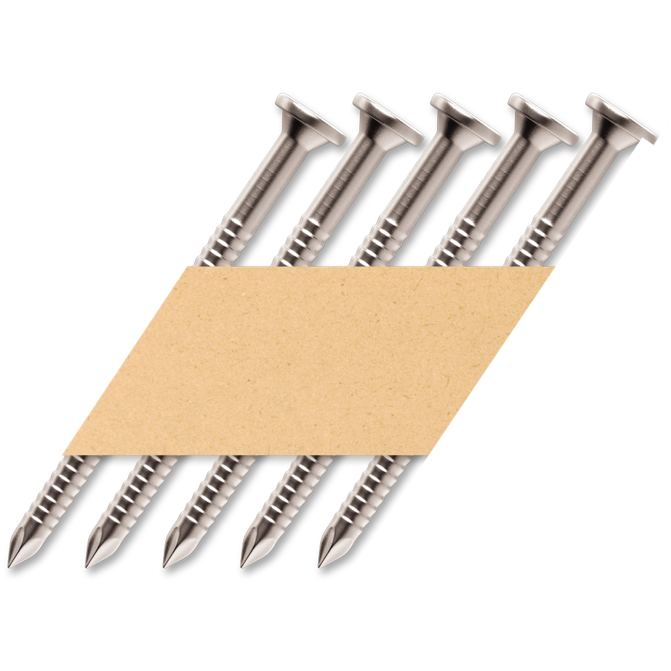 Papírový pás se obvykle používá na hřebíky do dřevěných konstrukcí pod úhlem 30° - 34°. Hřebíky jsou spojeny pomocí papírového pásku a lepidla. Papír okolo hřebíku je vstřelen do dřeva spolu s hřebíkem. Papírová páska snižuje riziko, že materiál zůstane pod hřebíkovou hlavou, a hřebík tedy netrčí ze dřeva. Snadněji se rozpadají a nepracují správně za mokra nebo vlhka kdy se hřebíky mohou v pásku uvolnit.
