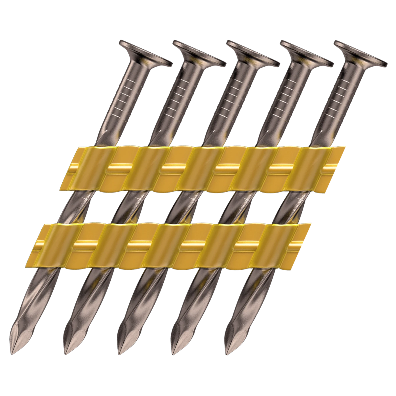 Plastový pás se obvykle používá na hřebíky do dřevěných konstrukcí pod úhlem 20° - 22°. Hřebíky jsou spojeny pomocí plastového pásku, který se rozpadá při vystřelení hřebíku z hřebíkovačky. Jsou levnější než jiné typy páskovaných spojovacích prvků (v plastových svitcích nebo v papíru), protože jejich výroba je snadnější. Při nízkých teplotách mohou být velmi křehké a zbytkový plast se musí zlikvidovat. Kousky plastu někdy zůstanou pod hřebíkovou hlavou a způsobují, že hřebík mírně trčí ze dřeva.