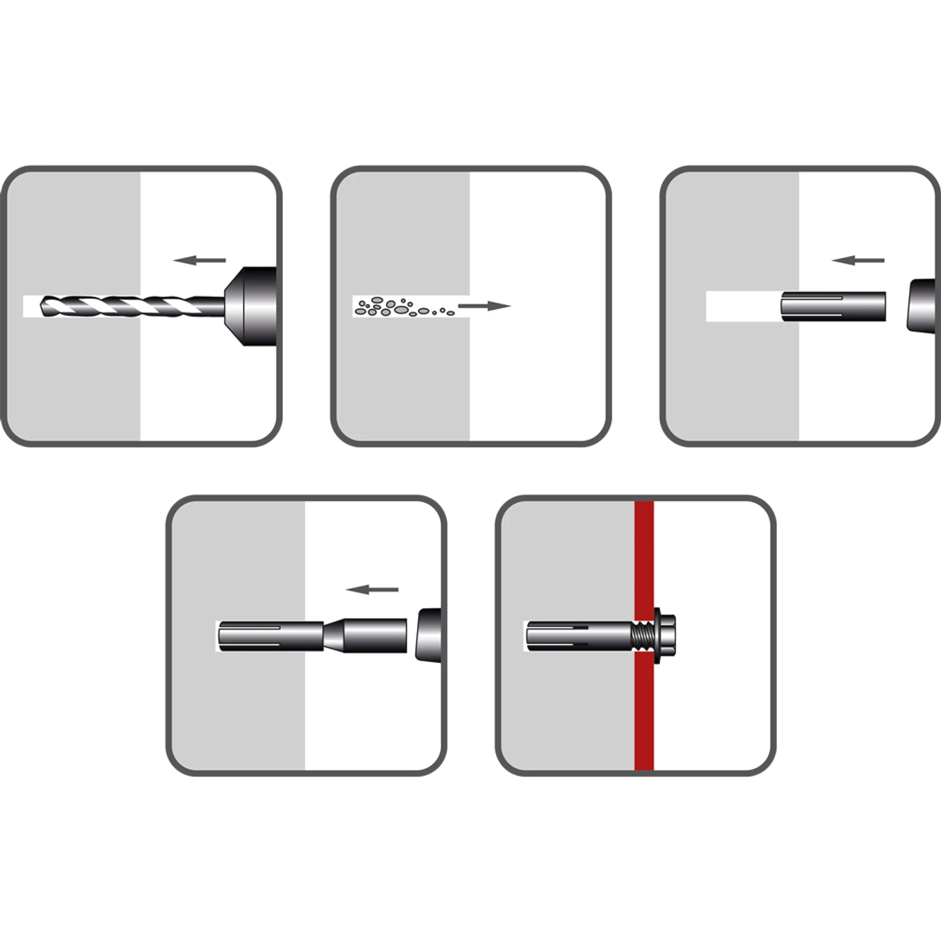 Ocelová kotva s čepem, montáž pomocí narážeče. Vhodná k upevňování v plných stavebních materiálech.