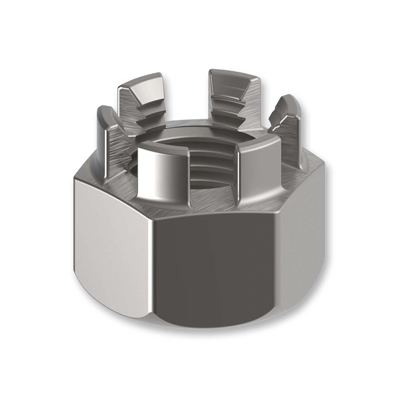 Korunková šestihranná matice DIN 935 se používá ve spojení se závlačkou DIN 94 k tvarovému pojištění šroubového spoje. Matice pojistné korunkové dodáváme galvanicky pozinkované ve třídě 6.