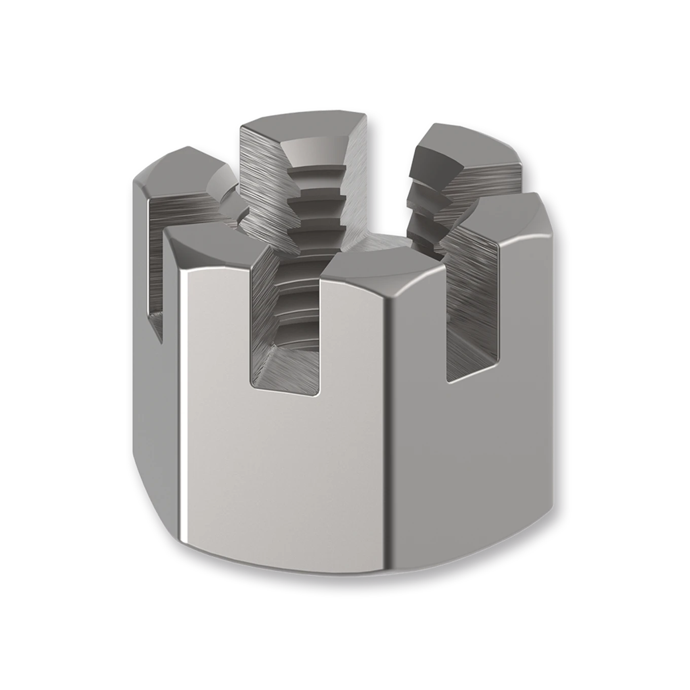 Korunková šestihranná matice DIN 935 se používá ve spojení se závlačkou DIN 94 k tvarovému pojištění šroubového spoje. Matice pojistné korunkové dodáváme galvanicky pozinkované ve třídě 6.