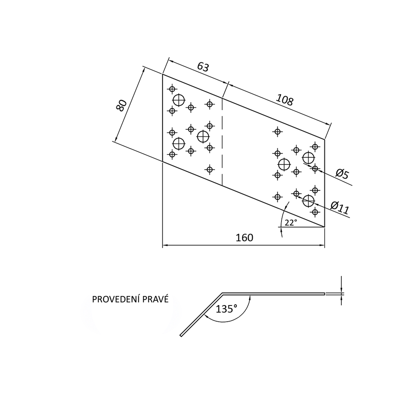 Úhelník 135° VALBY 80x63x108x2,0 pravý