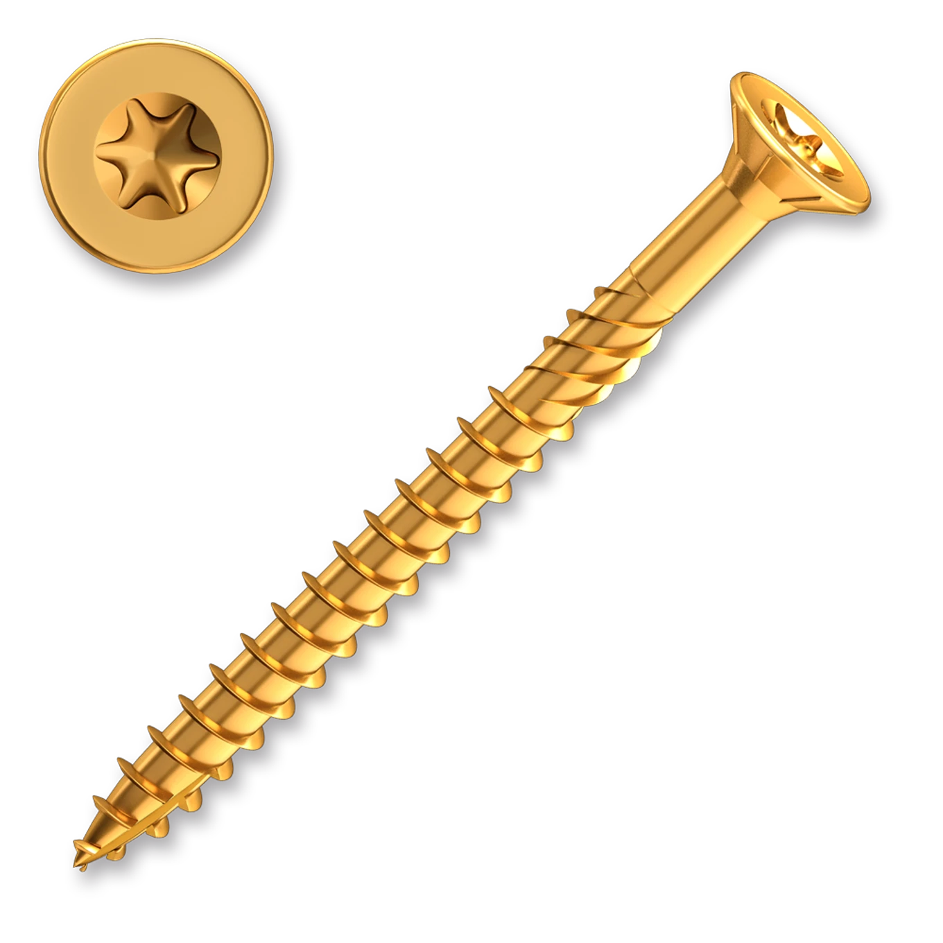 Tyto stavební tesařské vruty se zápustnou hlavou se vyznačují vysokou pevností díky použitému materiálu s vyšším obsahem uhlíku a následnému tepelnému zušlechtění - kalení.